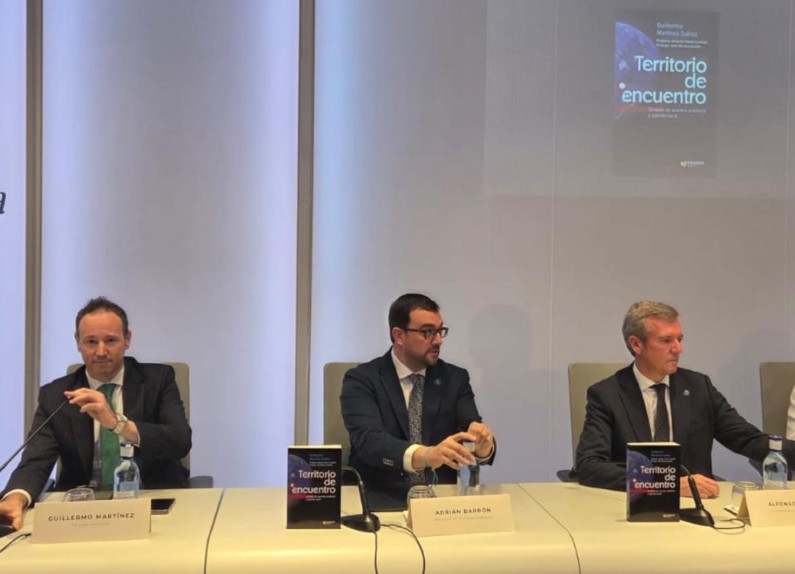 Los presidentes de Asturias, Adrián Barbón, y de Galicia, Alfonso Rueda, participaron en la presentación del libro ‘Territorio de encuentro’ del exconsejero asturiano Guillermo Martínez