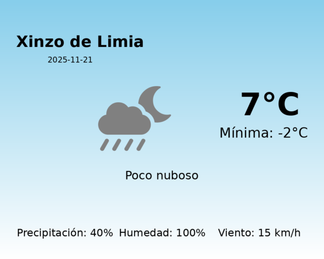 Para todos los habitantes de Xinzo de Limia, la predicción del tiempo para hoy, 21 de noviembre de 2025, trae consigo un panorama invernal que requiere precauciones debido a las bajas temperaturas y condiciones meteorológicas desafiantes.