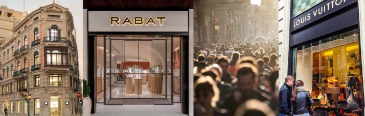 En el caso de la capital catalana, Paseo de Gracia repite como epicentro de boutiques de gran lujo, con enseñas de moda como Versace y Louis Vuitton junto a firmas de alta joyería como Bvlgari, Rabat o Chopard, que se suman a la decoración que ilumina el eje modernista que discurre entre La Pedrera y la Casa Batlló.