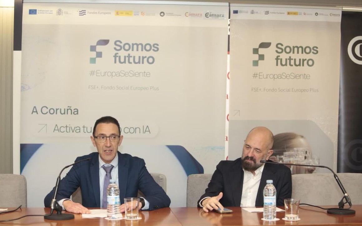 A Coruña, 26 de febrero de 2026- La jornada Somos Futuro ha llegado hoy a A Coruña, organizada por la Cámara de Comercio de A Coruña y la Fundación Universidad-Empresa. El encuentro se ha celebrado en la Cámara de A Coruña con el objetivo de acercar a jóvenes de entre 16 y 29 años las oportunidades que ofrece la Inteligencia Artificial como aliada en la búsqueda de empleo. El programa ha incluido una charla inspiradora a cargo de Raquel Maquieira, consultora de innovación y estrategia de negocio, así como una mesa redonda centrada en los retos actuales del mercado laboral y un taller práctico sobre marca personal para potenciar la empleabilidad y visibilidad del talento joven.