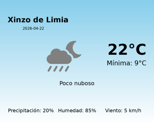 Predicción del Tiempo para Xinzo de Limia el 22 de abril de 2026